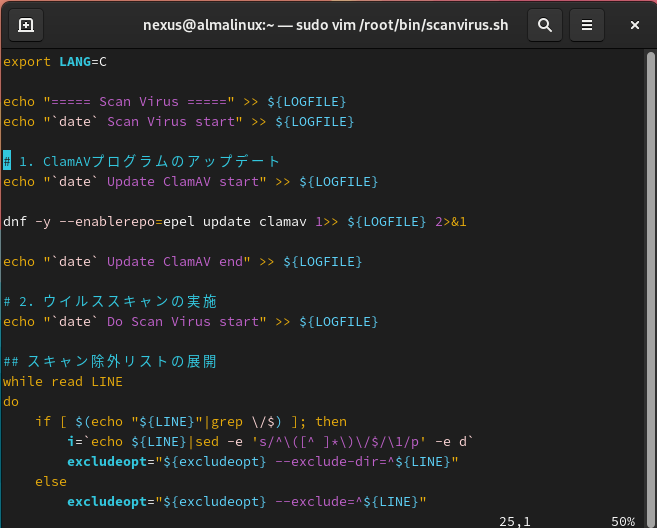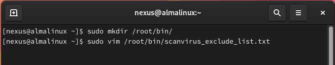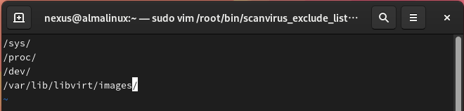 $ sudo vim /root/bin/scanvirus_exclude_list.txt