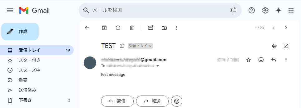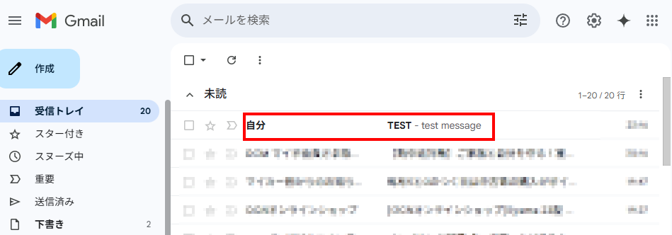 確認のため、管理者のメールアドレス=Gmailにメールしてみましょう。