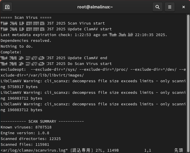 ClamAVインストールからウイルス定義自動更新までは、ClamAVでウイルス対策!AlmaLinuxへの導入と自動更新設定手順【初心者向け】を確認してくださいね。
