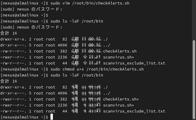 $ sudo chmod u+x /root/bin/checkAlerts.sh