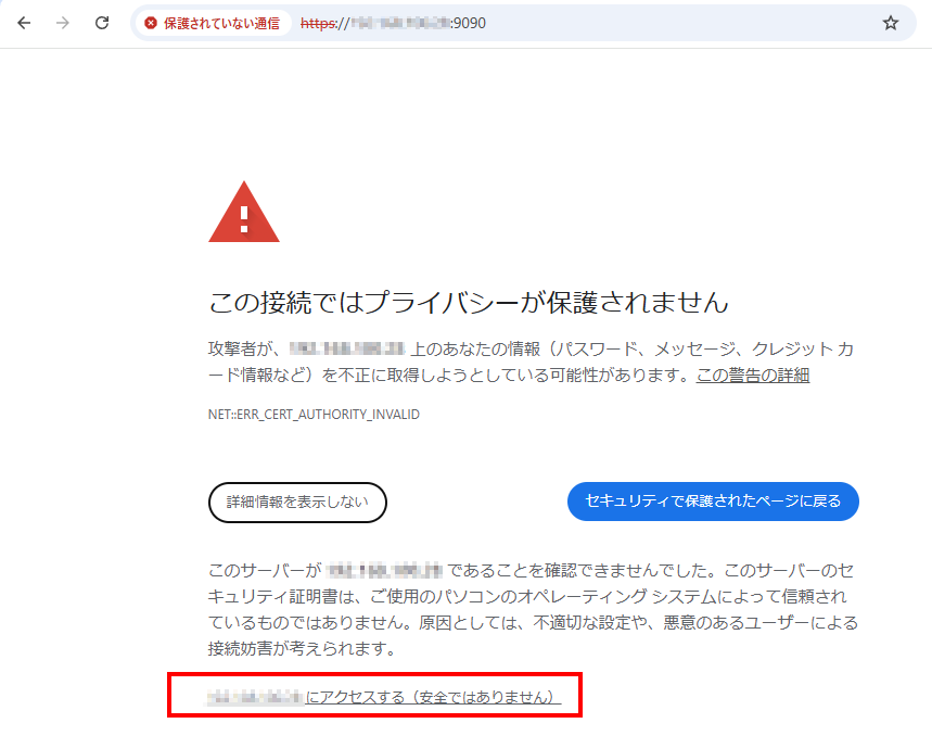「XXXXにアクセスする(安全ではありません)」をクリック。