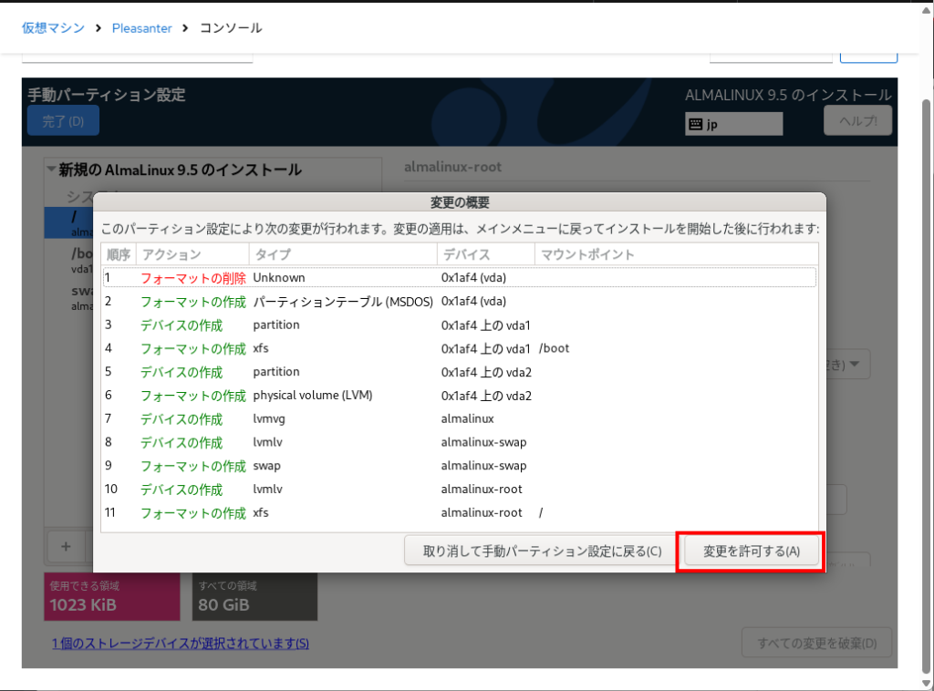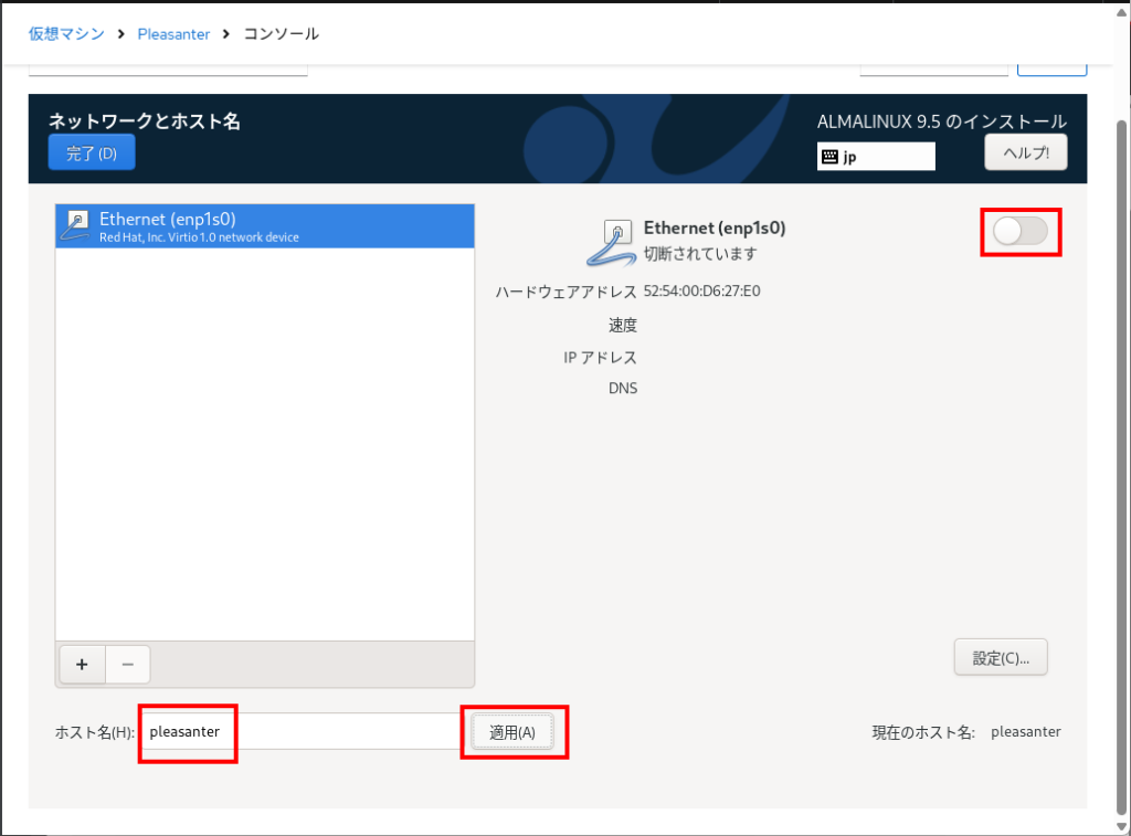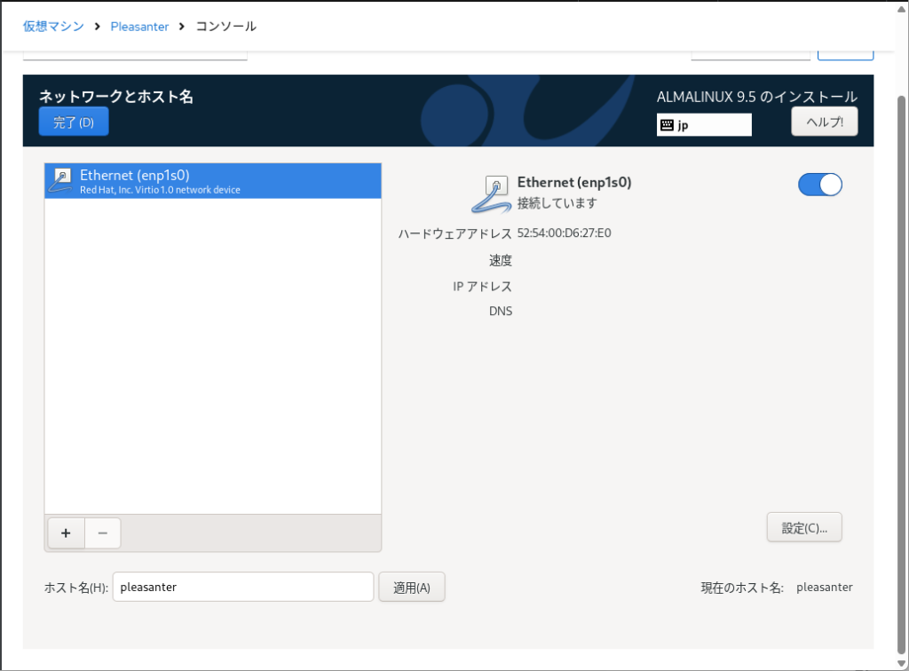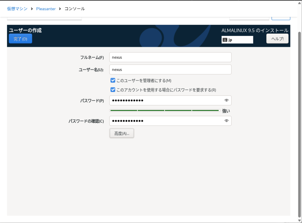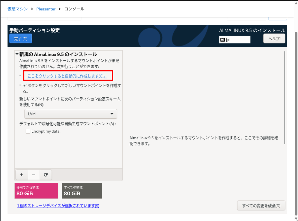 予めAlmaLinux の公式サイトから「AlmaLinux-9.5-x86_64-dvd.iso」をダウンロードしておいてください。