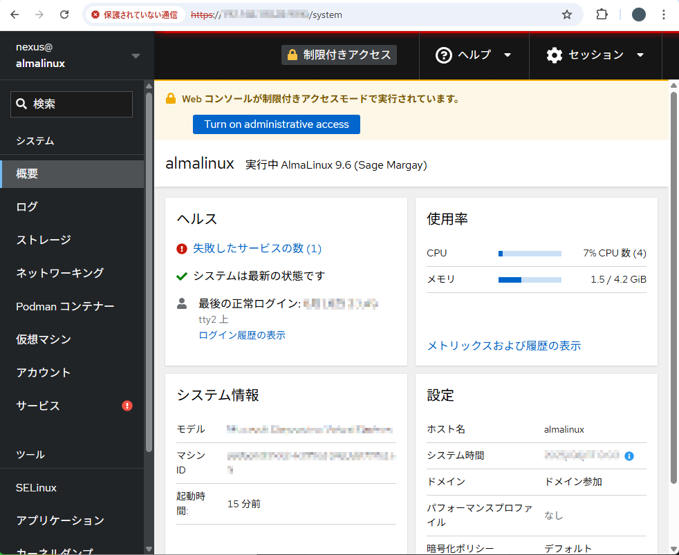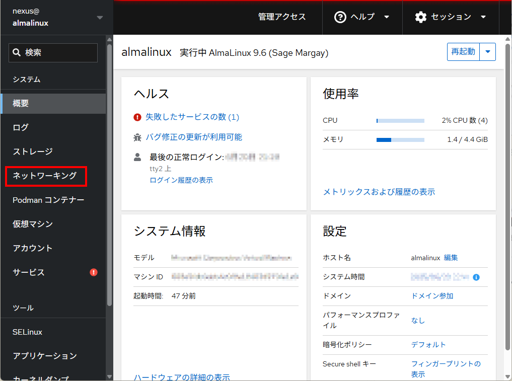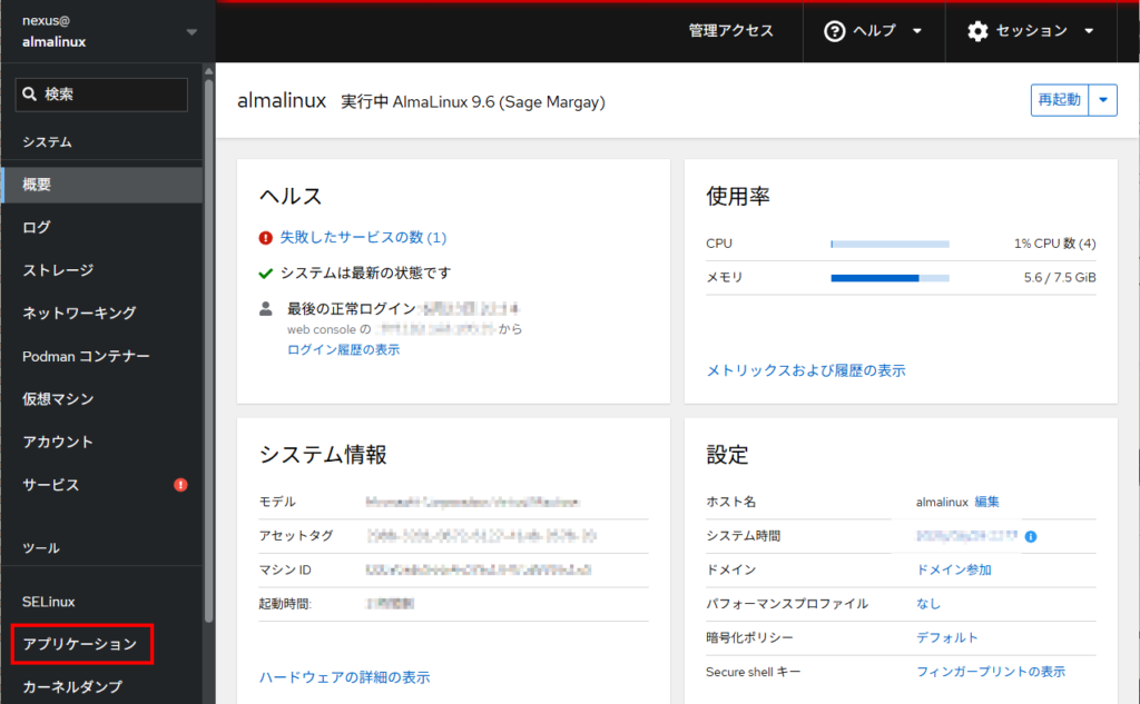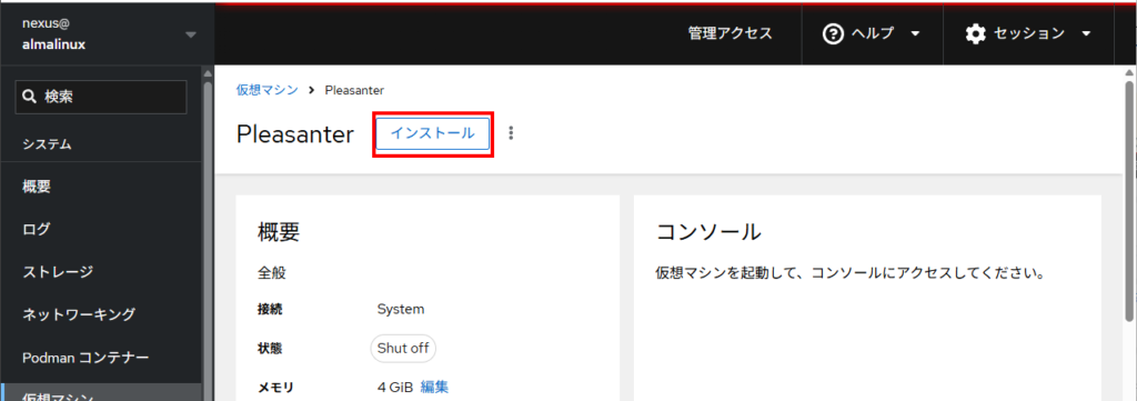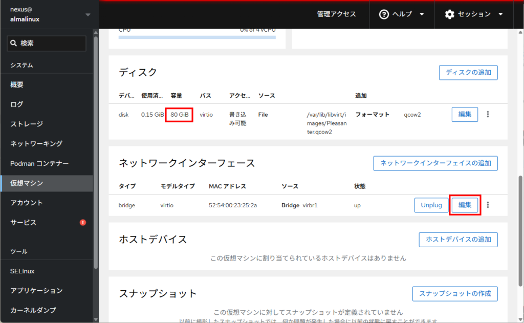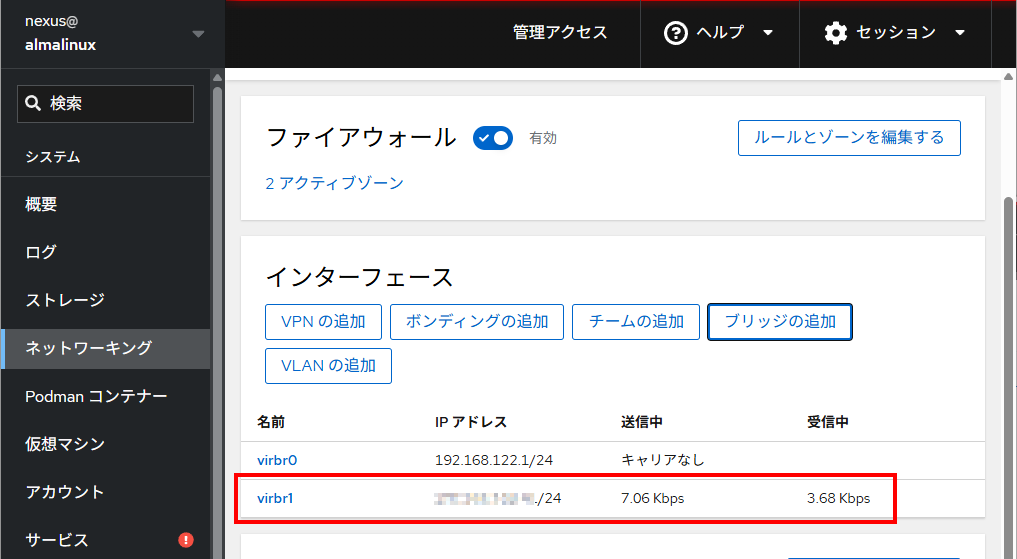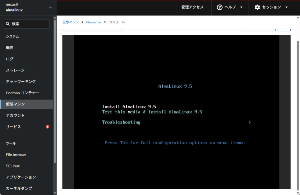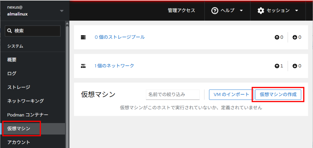 Almalinuxには、KVMを簡単管理できるツール、Cockpitがあります。