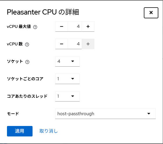 「ホスト名」に「Pleasanter」を入力、「適用」をクリック。