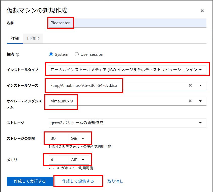 Almalinux のKVMを利用してVMを作成、そこにプリザンターを動作させていきます。