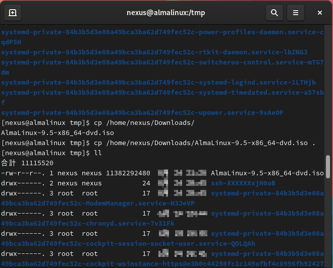 $ cp /home/nexus/Downloads/AlmaLinux-9.5-x86_64-dvd.iso .