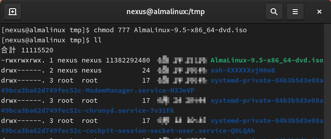 $ chmod 777 AlmaLinux-9.5-x86_64-dvd.iso
