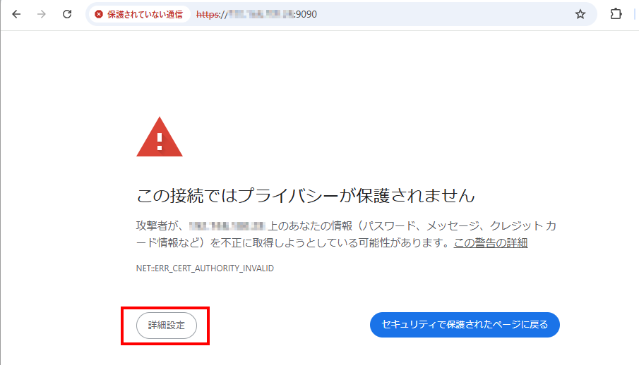 httpでの公開のため、ブラウザが警告しますが無視します。